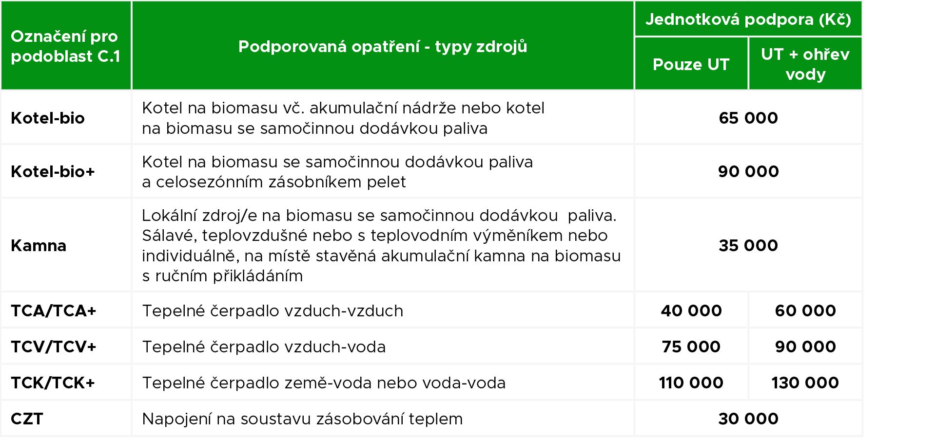 - V případě kombinace podoblastí „C“ (výměna zdroje, nebo ohřevu TV, nebo osazení velké FVE) se zateplením nebo výměnou oken, tak se navíc vyzíská dotační bonus ve výši 30 000 Kč.